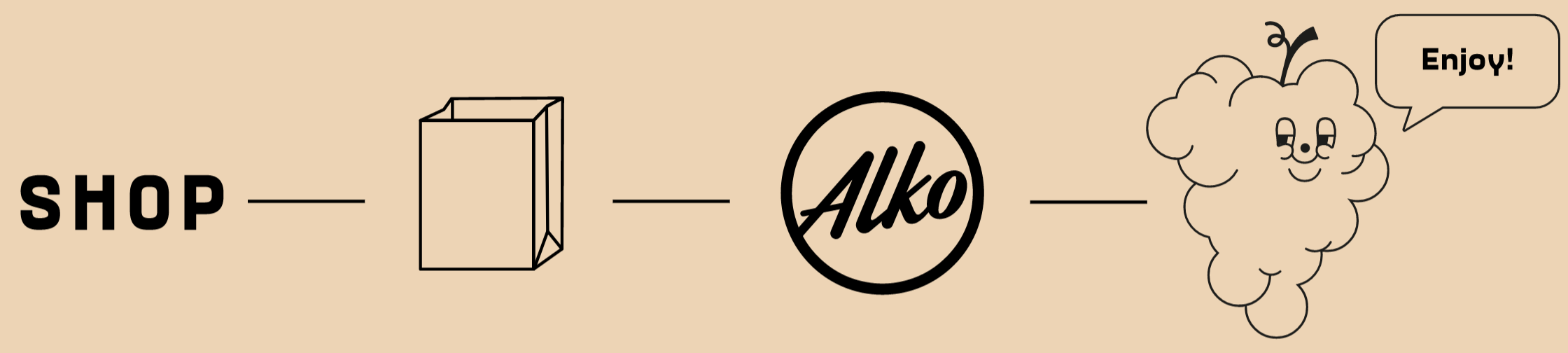 Kiinnostavan viinin löydettyäsi lisää se sivuillamme olevaan ostoskoriin. Kun olet valmis, paina ”siirry viimeistelemään ostos Alkon sivulle” -linkkiä. Linkki vie sinut Alkon verkkokauppaan, jossa kaikki valintasi löytyvät valmiiksi haettuina. Tämän jälkeen sinun tarvitsee vain lisätä tuotteet Alkon koriin, valita noutopaikkasi ja maksaa.